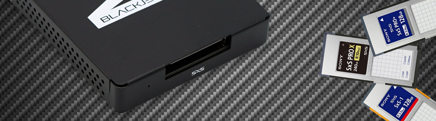 Blackjet™ DX-1S Reader Module permettant aux utilisateurs d'ingérer, d'éditer et d'archiver le contenu créatif des cartes Sony SxS à leur vitesse maximale. Le module DX-1S est compatible avec les systèmes d'accueil TX-2DS et TX-4DS.