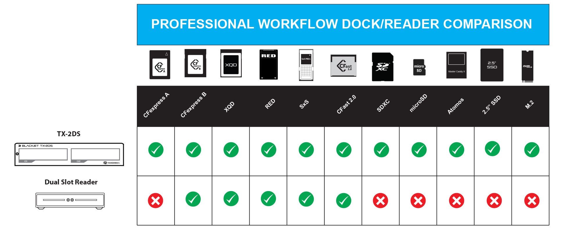 TX-2DS will save you time by offloading your CFexpress B cards at speeds up to 1700 MB/s!*